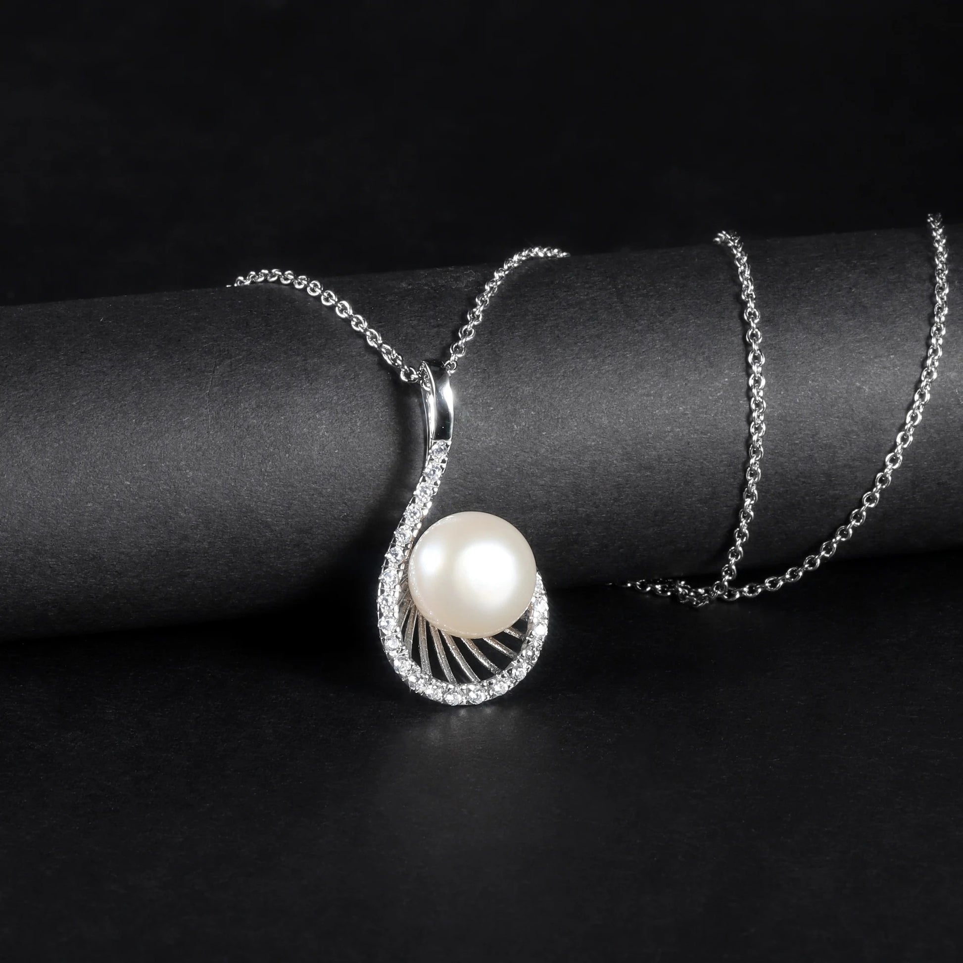 To add a hint of luxury, the silver curve is pavé-set with shimmering White Cubic Zirconia (CZ) stones that lead the eye down to the lustrous pearl. Weighing 3.30g, this pendant is lightweight enough for everyday wear yet substantial enough to make a statement. It is the perfect romantic gift for her.
