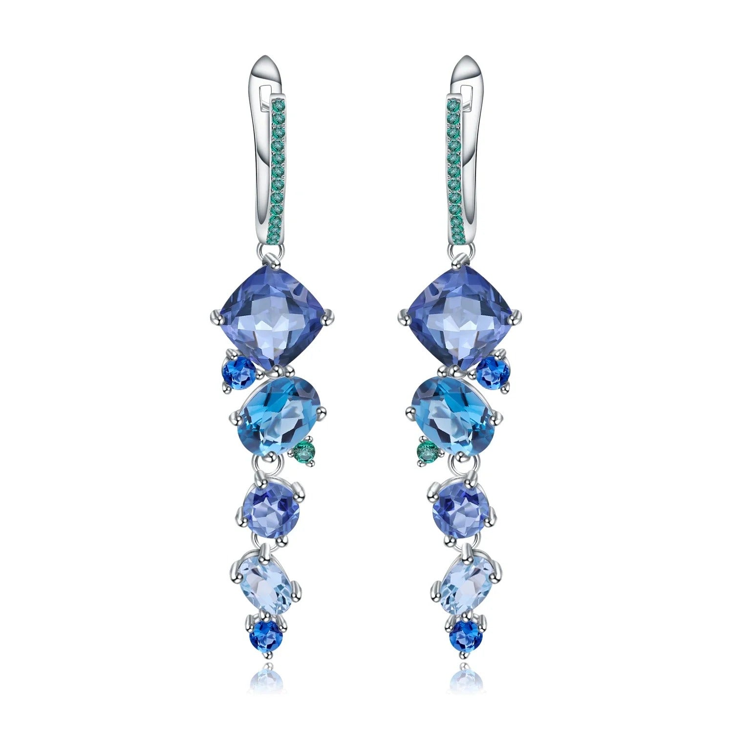 Blue Mystic Quartz & Topaz Cascading Drop Earrings | 925 Silver